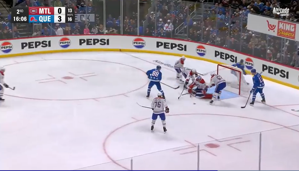 While there’s been some woeful moments in net, the Canadiens have played some bad defense, too. This example may not be fair, considering their opponents were the Colorado Avalanche, but I don’t think that excuses a team with playoff aspirations from chasing the play like they did. Below is a screenshot of Brock Nelson just chilling in the back door.